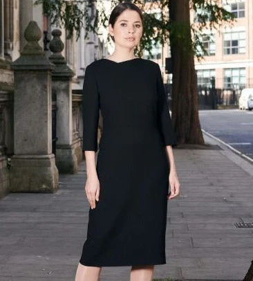 The Ede & Ravenscroft Joy tailored dress is crafted from our wool crepe fabric, which will effortlessly take you from desk to dinner. The three quarter length sleeve dress is finished with an inverted v neckline with stitch detailing. This dress can be worn on its own or with our wool crepe jackets, the Jennifer, Harper or Juliet.
