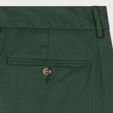 Made in Italy from a premium wool twill cloth, these dark green trousers feature a tapered-fit and cropped length. Ideal for dressing up or down, these trousers are complete with angled side pockets, belt loops and rear jetted pockets.